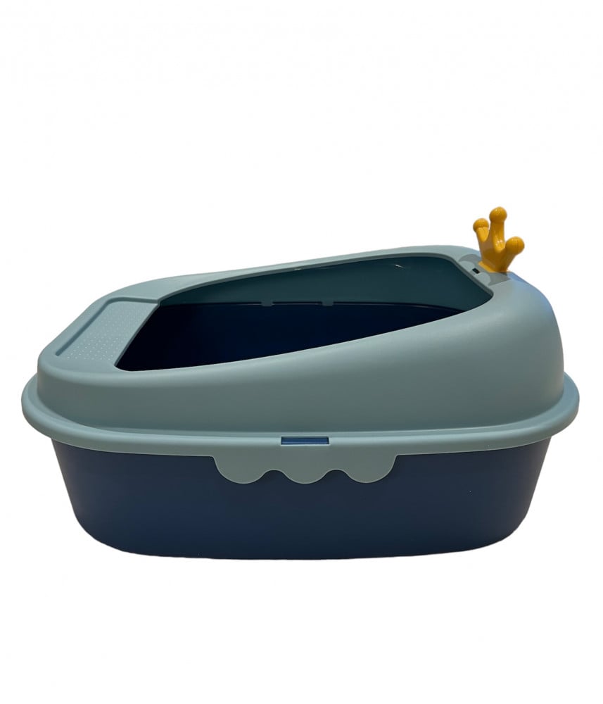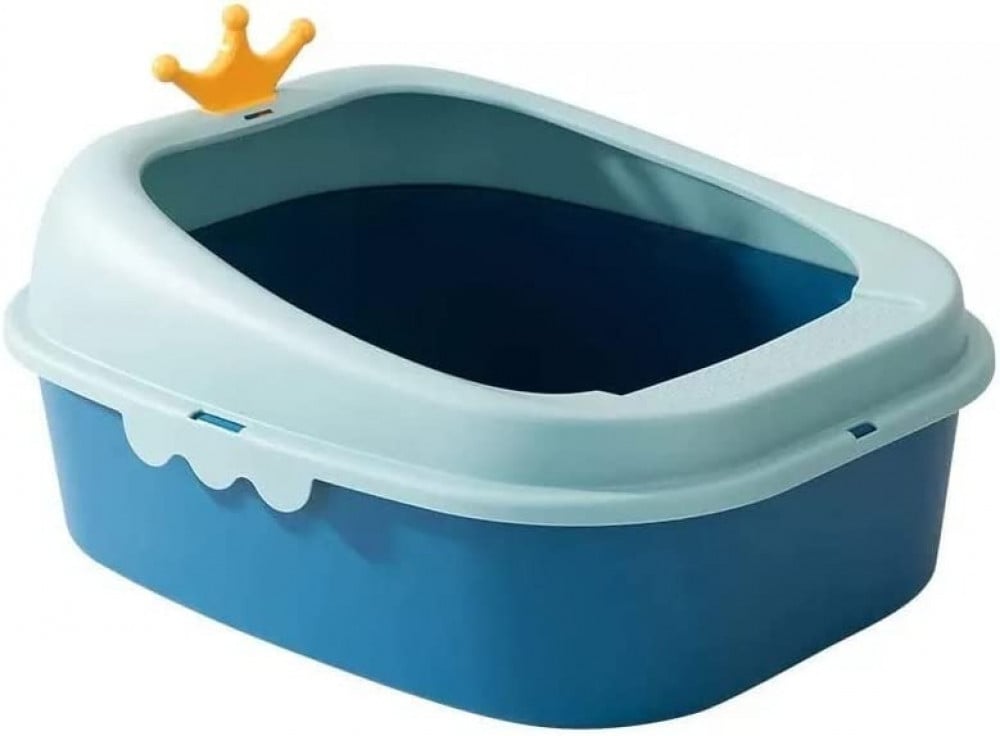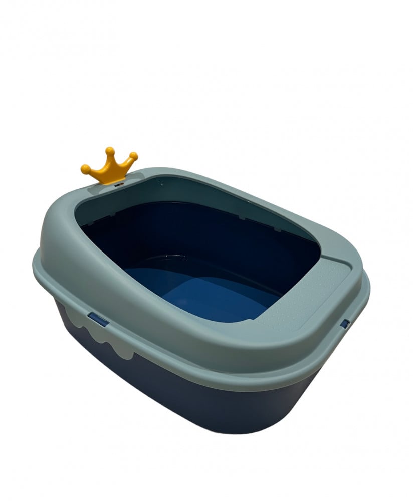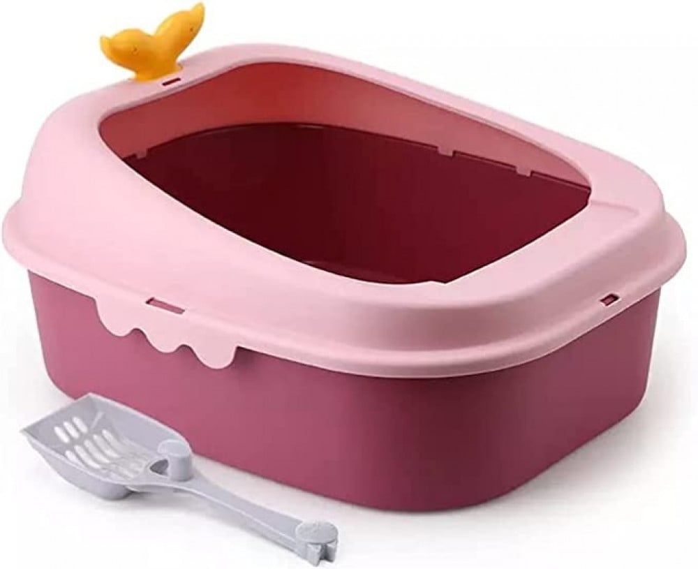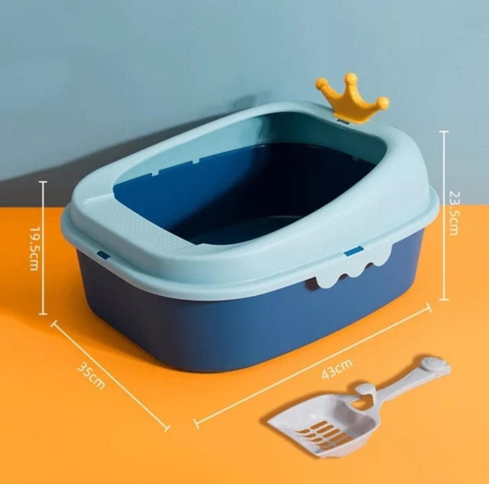 ليتربوكس للقطط مع إطار بحواف منحنية لمنع تناثر الرمل ومجرفة للرمل